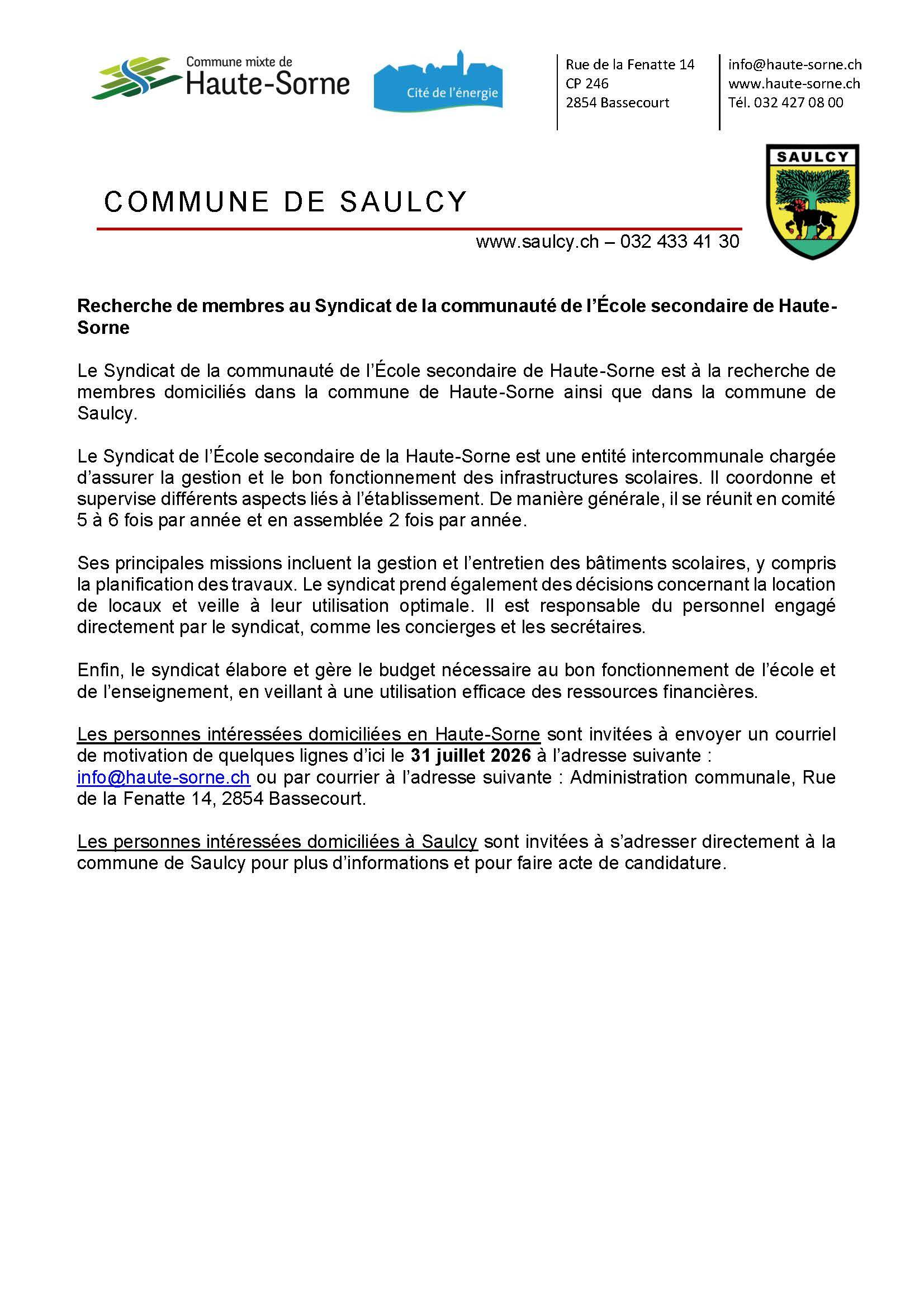 © 2026 Commune mixte de Haute-Sorne. Tous droits réservés